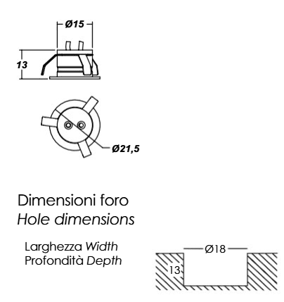 | Dimensioni | Ø21,5 x 13 mm |
