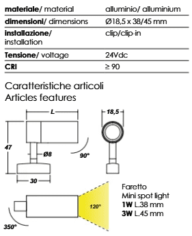 Progettato per creare luce concentrata per teche, installazioni arredamento negozi, musei, nicchie e vetrine.